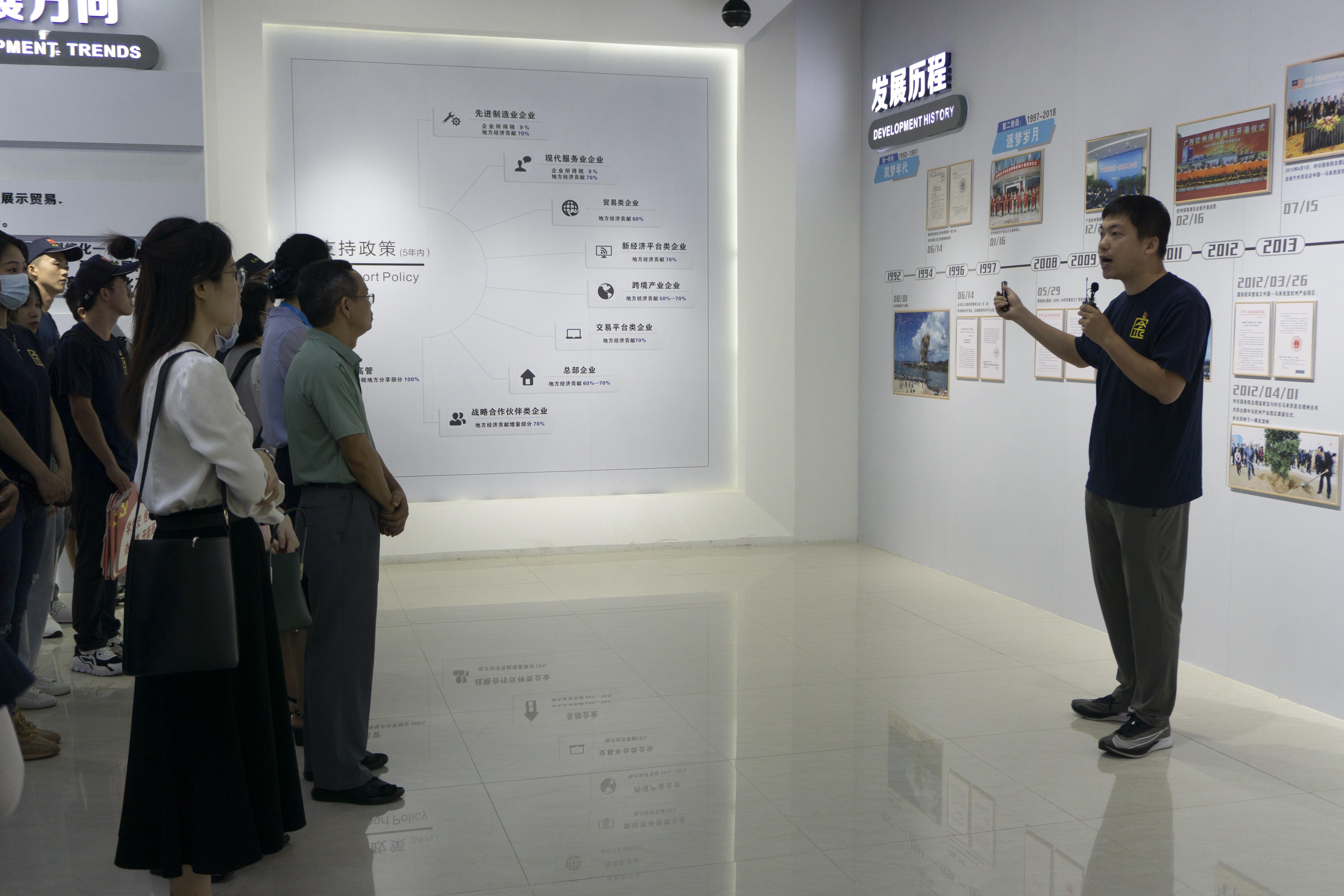 师生听讲解员介绍钦州试验区发展历史