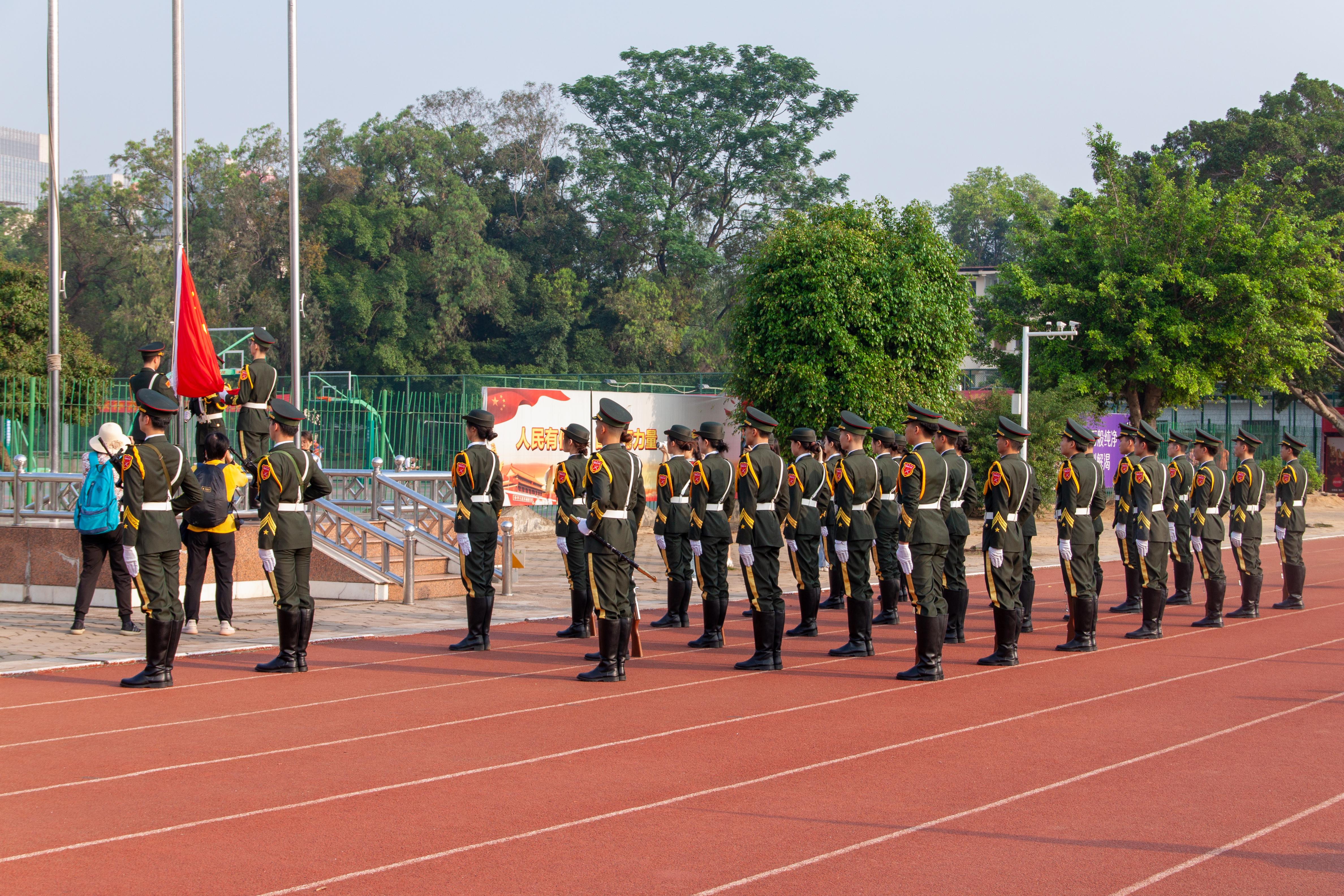 西校园田径场参与学校隆重举行的“五一”劳动节升国旗仪式,共祝祖国繁荣昌盛。