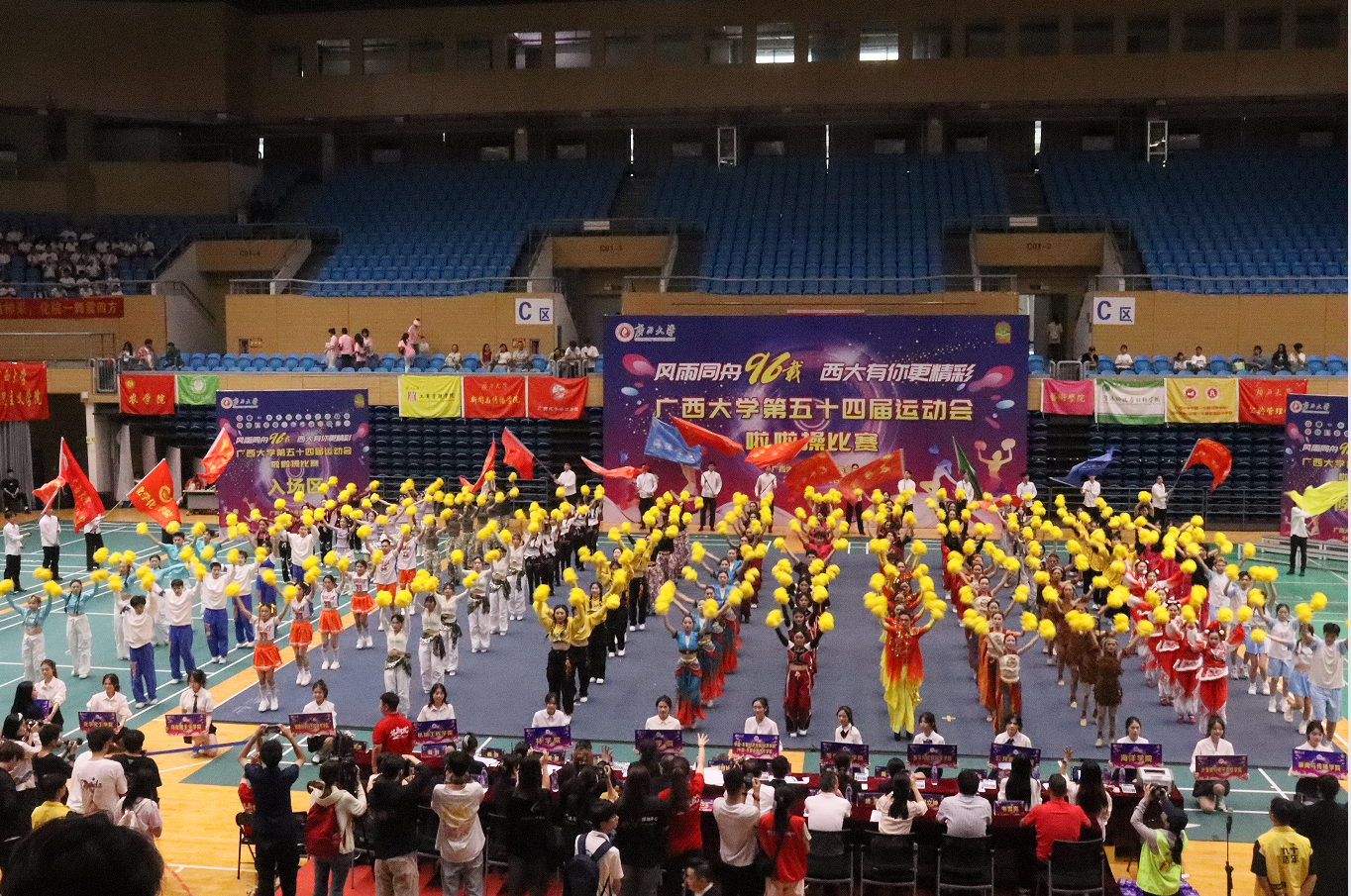 第五十四届运动会啦啦操比赛在西校园综合体育馆举行。本次比赛全校共有24个学院代表队参加,其中分为大学院组16支队伍,小学院组8支队伍。h视频