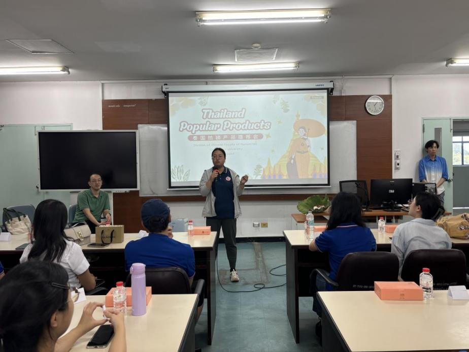 The opening remarks were delivered by Ms. Gu Mengyu from the Department of Chinese Language, Faculty of Humanities at Chiang Mai University, who warmly welcomed the Guangxi delegation and highlighted the geographic and cultural ties between the two countries. She expressed hope that the academic dialogue would help young people from both universities deepen mutual understanding and serve as a bridge of China-Thailand friendship. This was followed by Mr. Li Xiongying, Associate Dean of CAMT, who emphasized the importance of the “product + culture” collaboration model in enabling students to showcase professional competence while also exploring the cultural heritage behind local products.