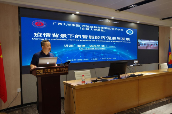 举办“东盟大学讲堂”系列活动的第一场线上讲座,邀请来自印度尼西亚的桑提·诺瓦尼(Santi Novani)博士进行主讲。本次讲座活动除面向本学院本硕博学生,还向区内金融机构、国企、研究单位开放,参会人员踊跃,现场加线上超过340人聆听讲座。