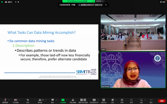 诺瓦尼博士目前担任印尼万隆理工大学工商管理学院的副教授,她在数据收集和统计分析、战略决策与谈判等相关方面有着较深的研究。本次课程的题目是:疫情背景下的智能经济促进与发展。