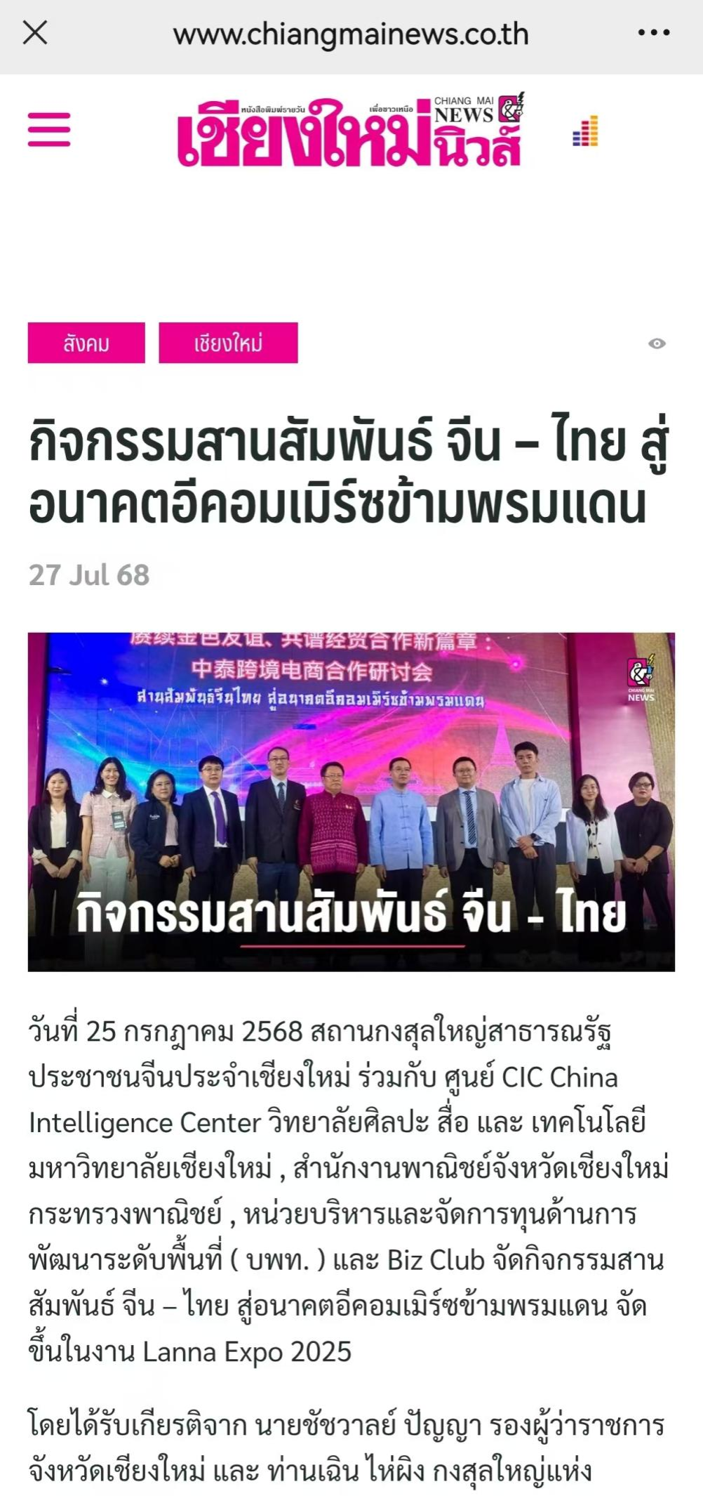 带队教师于娜老师在接受当地媒体Chiangmai News《清迈新闻》的采访时表示“今年是中泰建交50周年暨“中泰友谊金色50年”,很荣幸能与同学们受邀参加本届2025年兰纳博览会和中泰跨境电商合作研讨会,我们向博览会主办单位及清迈大学表示衷心地感谢并祝博览会圆满成功! 同学们通过本次博览会及研讨活动,一方面拓展了他们的国际视野,加深了对泰国经济和中泰贸易的理解;另一方面,每位同学都能够有机会将他们所学的经贸专业知识运用到实践场景中,通过与泰国展商和从事中泰贸易的专业人士深度交流互动,帮助当地企业了解中国市场、电商模式和消费者喜好等,真正支持推动中泰商品贸易和互联互通......”, 活动在深化同学们对中泰贸易实务认知的同时,也为泰国本土企业开拓中国市场提供了消费群体拓展的参考策略。