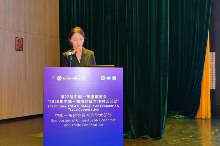 院长助理、副教授刘骞文主持了学术报告环节。交流中,多位青年学者和研究人员就亚太区域经济合作、中国—东盟跨境电商、金融科技与绿色供应链等议题发表研究成果,从多维度探讨中国与东盟在新形势下的合作路径与发展机遇。