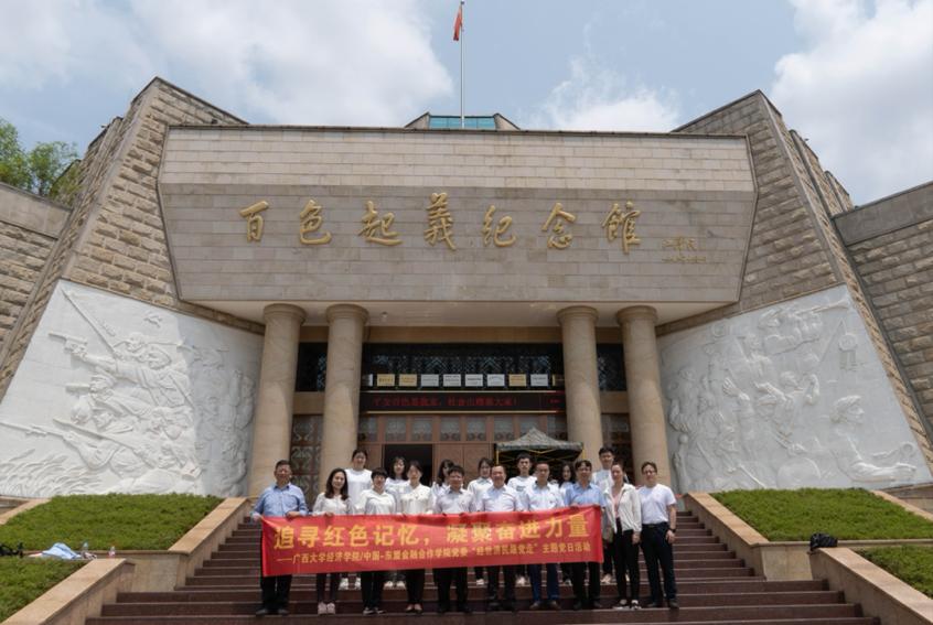 /中国-东盟金融合作学院党委书记陆善勇教授带队,学院党委委员、各党支部书记、党员和党外人士代表一行20人赴革命老区百色开展“追寻红色记忆,凝聚奋进力量”——“经世济民跟党走”主题党日活动。
