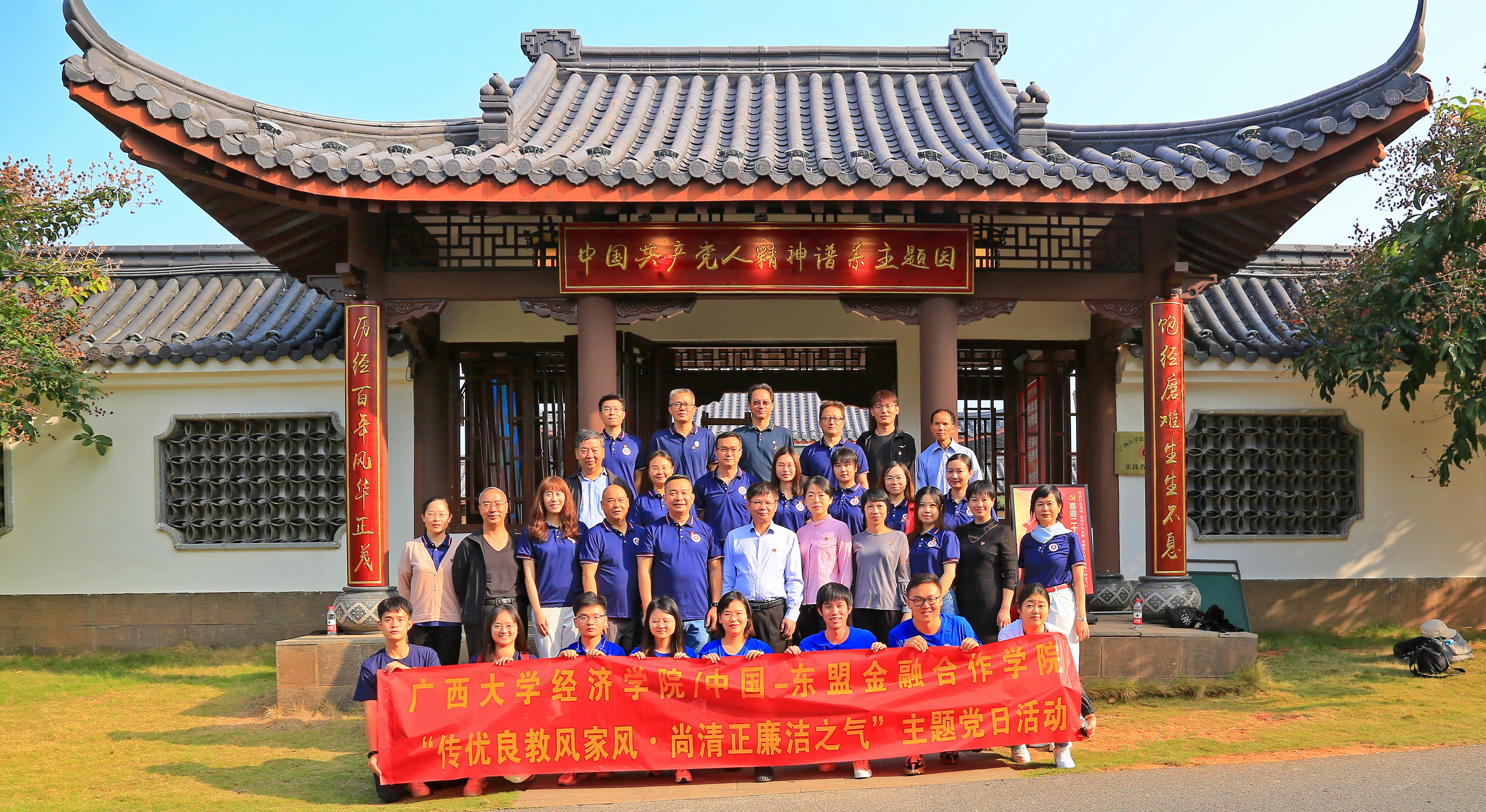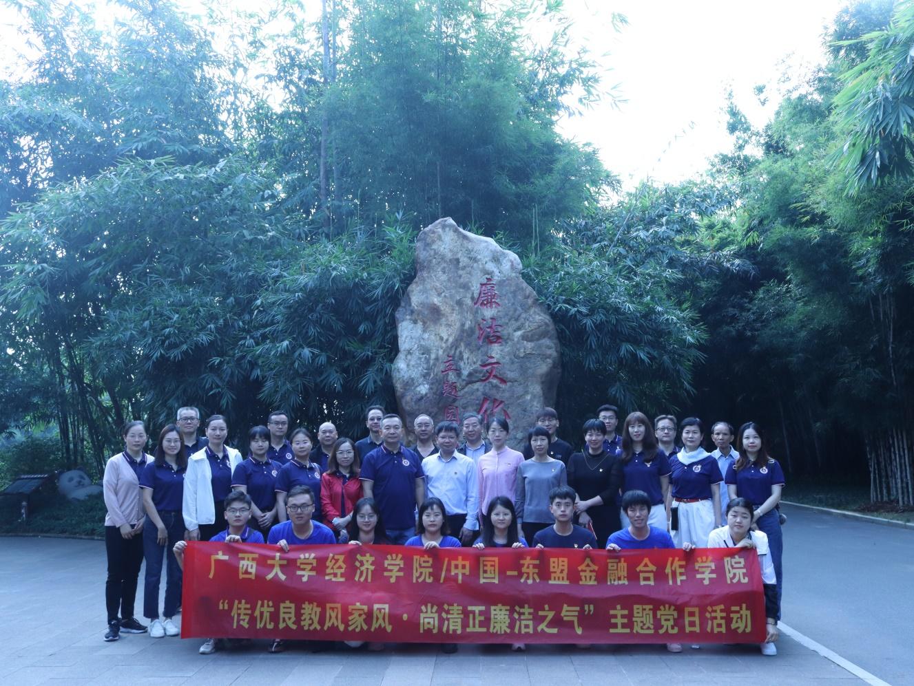 /中国-东盟金融合作学院教职工党员和学生党支部代表前往南宁市青秀山参观“中国共产党人精神谱系文化园”“廉洁文化阵地—竹园”,开展“传优良教风家风·尚清正廉洁之气”主题党日活动。学院党委书记陆善勇教授、h视频