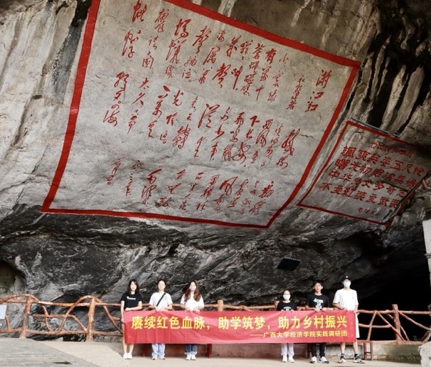 /中国-东盟金融合作学院辅导员曾宪友老师带领一名兼职辅导员、研究生和7名本科生到达百色市那坡县开展暑期实践活动,号召全体同学爱国爱人民,并宣传脱贫攻坚的政策知识,以实际行动了解脱贫致富的工作,提高为人民服务、对人民负责的意识。