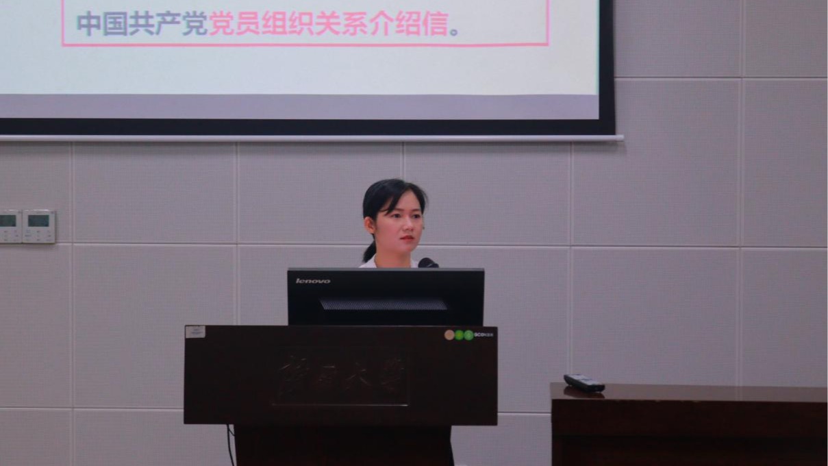 院团委副书记何湘桂布置毕业生党员组织关系转移工作。她强调了准确及时地办理党员组织关系转接的重要性,介绍了转移党组织关系的基本要求、具体手续和注意事项,并对区内外、校内外转移的各类特殊情况进行了举例讲解。