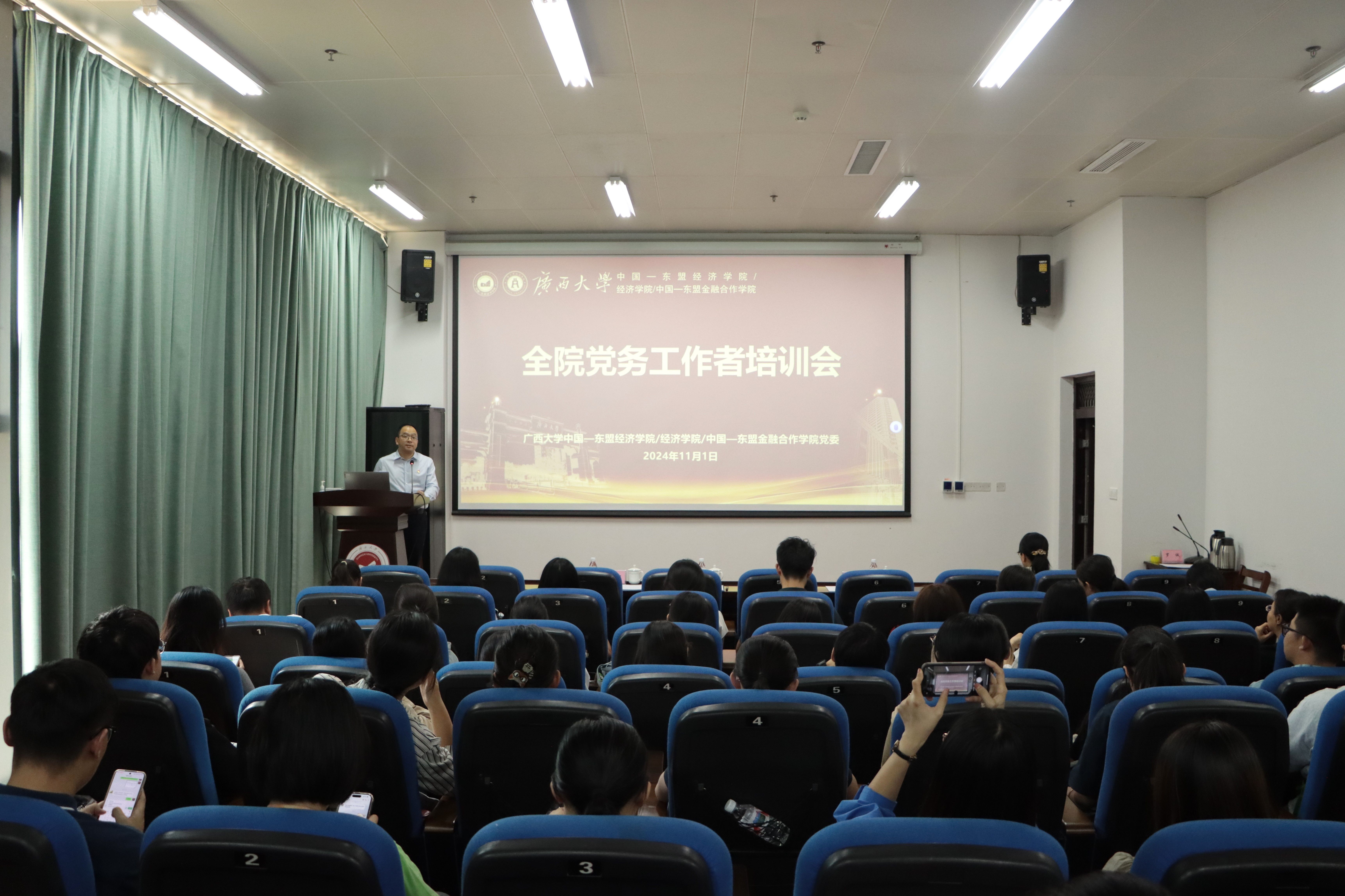 党委在学院A107报告厅召开全院党务工作者培训会。本次会议特别邀请到厦门大学航空航天学院党委书记廖志丹作为主讲嘉宾。学院党委常务副书记罗诚主持培训会并作动员讲话。学院党委副书记、纪委书记陈卉娟、学院教工党支部和学生党支部全体支委参加培训会。