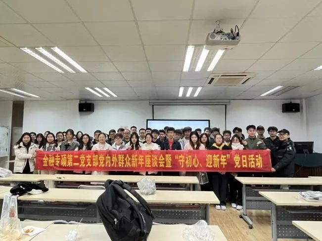 /中国-东盟金融合作学院金融专硕第二党支部在工商管理学院618教室开展党内外群众新年座谈会暨“守初心,迎新年”党日活动,支部全体党员、入党积极分子共53人参加此次活动。