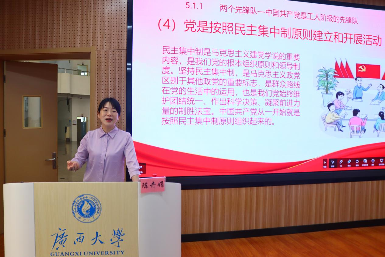 学生工作部(处)副部(处)长陈卉娟为本期入党积极分子培训班学员讲授第一讲《中国共产党的性质、最高理想和根本宗旨》。