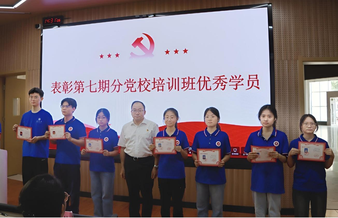 会上,罗诚为第七期分党校培训班优秀学员颁发荣誉证书并合影留念。