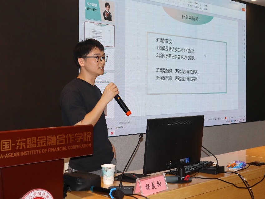 全体学员于君武楼前集体合影后,班主任凌雨晴老师主持开班仪式,并讲解校园指南、强调培训纪律。随后,学员代表韦晓妮就怎样写好网评文章进行主题发言。