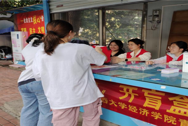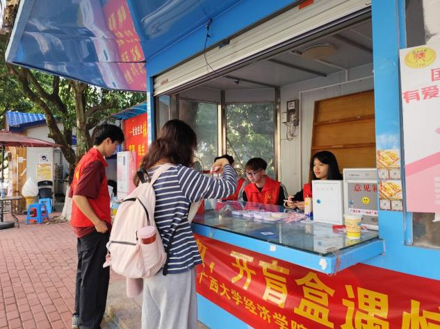 青年志愿者协会在学生宿舍西八栋旁一站式学生社区服务点开展“学雷锋乐奉献,开盲盒遇惊喜”主题志愿服务活动,活动现场吸引了众多师生参与。
