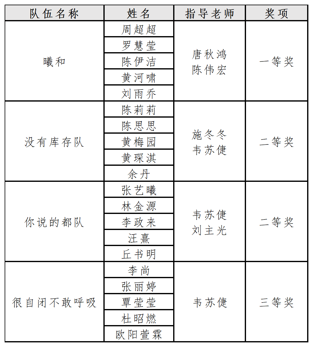 获奖队伍成员与指导老师名单
