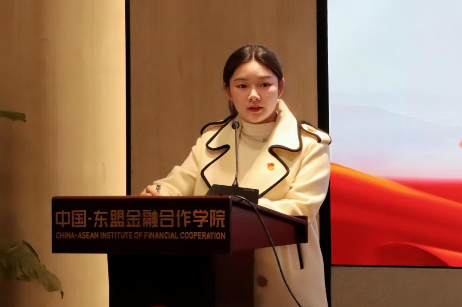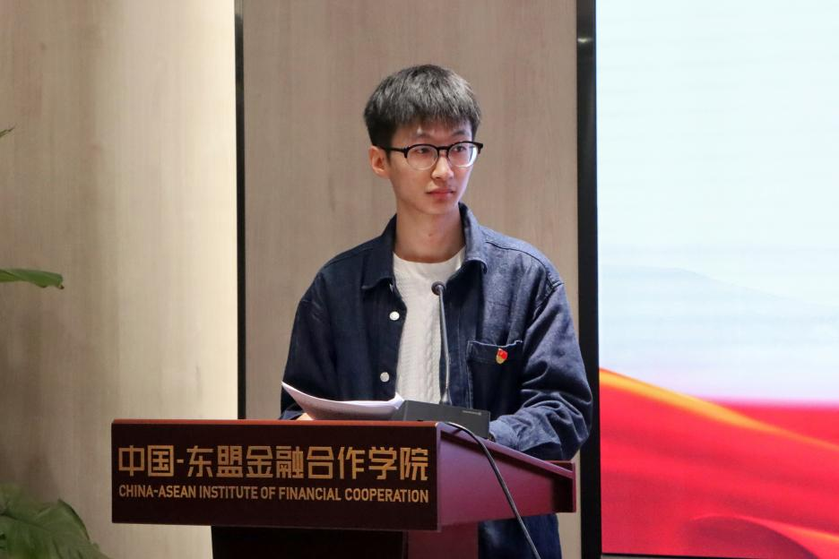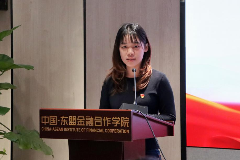 金融专硕第一党支部副书记黄佳雨代支部书记井水清述职