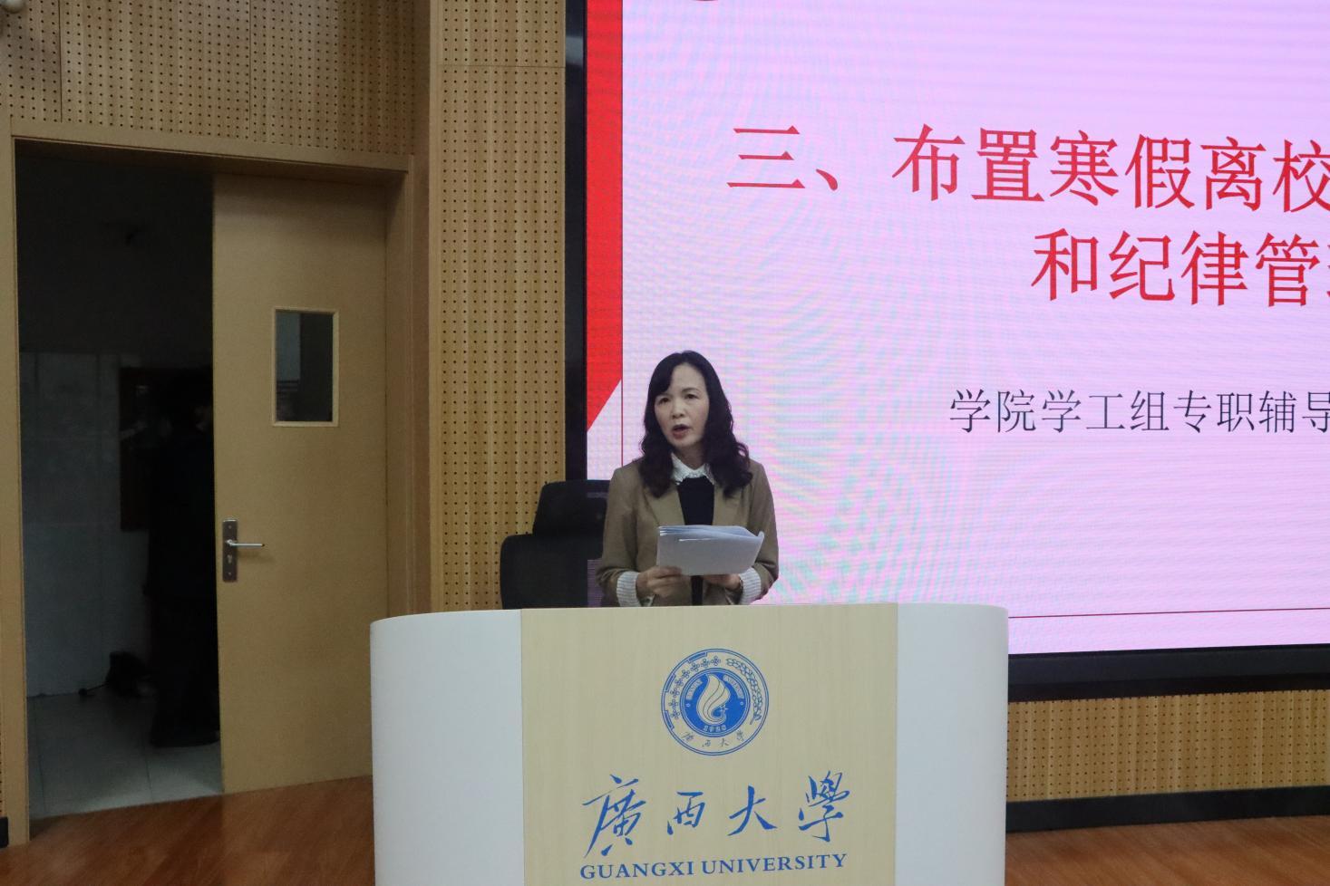 随后,学工组专职辅导员覃晓阳老师布置学生寒假离返校信息登记和纪律管理工作。根据h视频