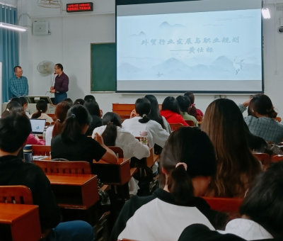 国贸系邀请广西鼎田农业科技有限公司黄仕标总经理为本院学生带来主题为“外贸行业发展与职业规划”的讲座,讲座由刘主光教授主持,在我校西2-305教室举行,h视频