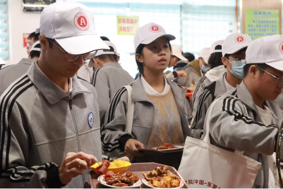 (同学们品尝本校食堂的美食)