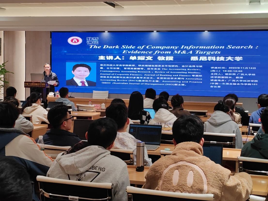 师生带来题为“The Dark Side of Company Information Search: Evidence from M&A Targets”的学术讲座。学术讲座在h视频