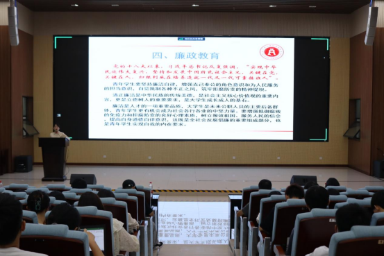 学院党委副书记陈卉娟做文明、诚信和廉政教育