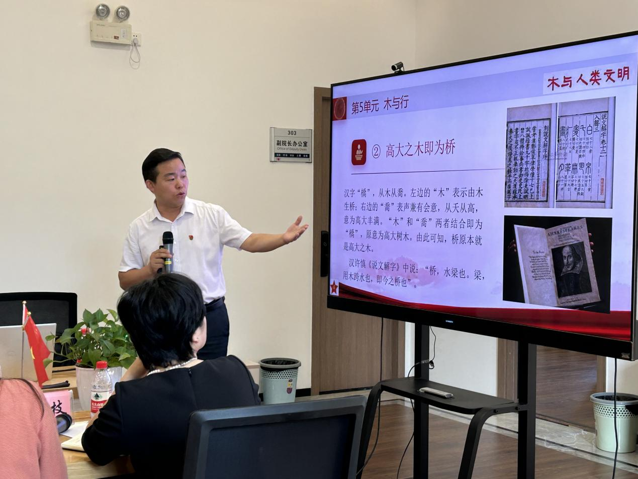 资源环境与材料学院副教授高伟,就课程思政设计与实践--以《木与人类文明》课程为例开展课程思政培训专题讲座。