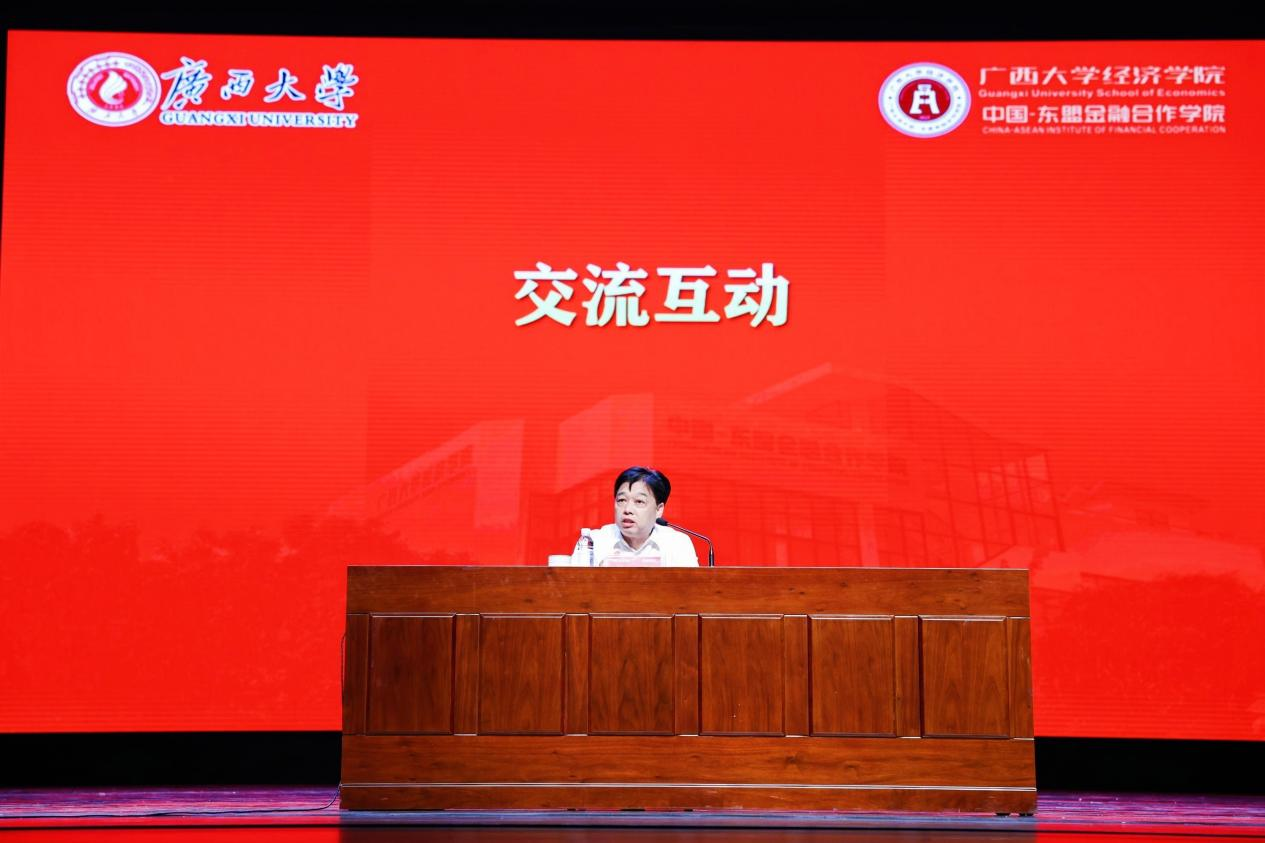 讲座的最后,范世祥主任就广西壮族自治区金融发展提出了四点建议:一是向跨境金融政策要实效。金融创新要有更多突破、更多推广和更多进展;二是向金融改革试验区要实效。鼓励各设区市围绕区域发展战略和实体经济发展需求开展金融改革创新试点,深抓金融改革实效;三是争取国家支持设立面向东盟的物流金融联盟。强化广西在面向东盟“双循环”中的地位,把握金融开放门户和陆海新通道建设等战略的历史机遇,推动广西由“通道角色”向“通道经济”的转型;四是争取国家支持开展期现结合试点业务。