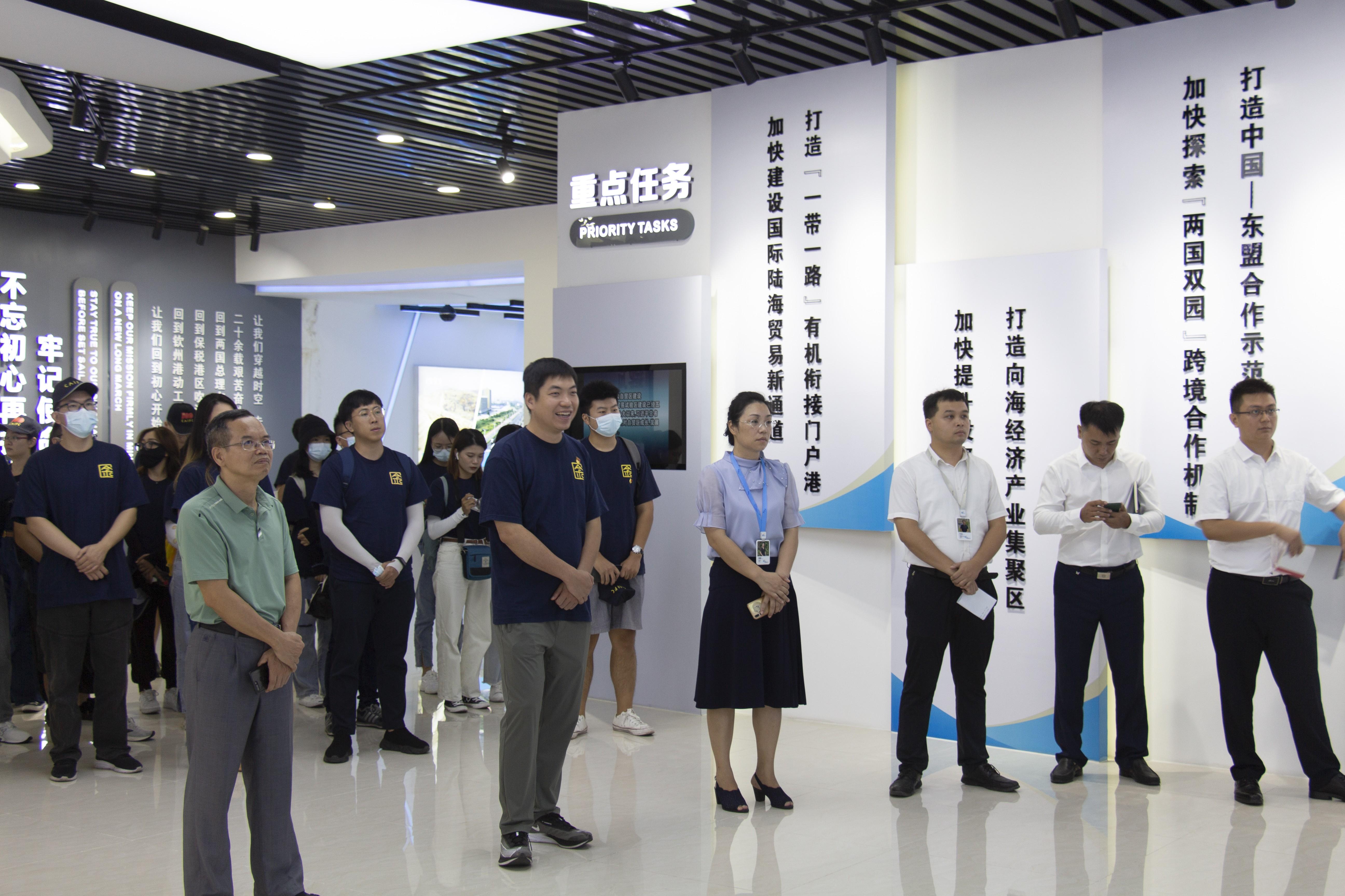 师生参观来到中国(广西)自由贸易试验区(钦州港片区),进一步了解试验区的发展历程以及试验区重点产业的发展与进程。在参观之际,h视频