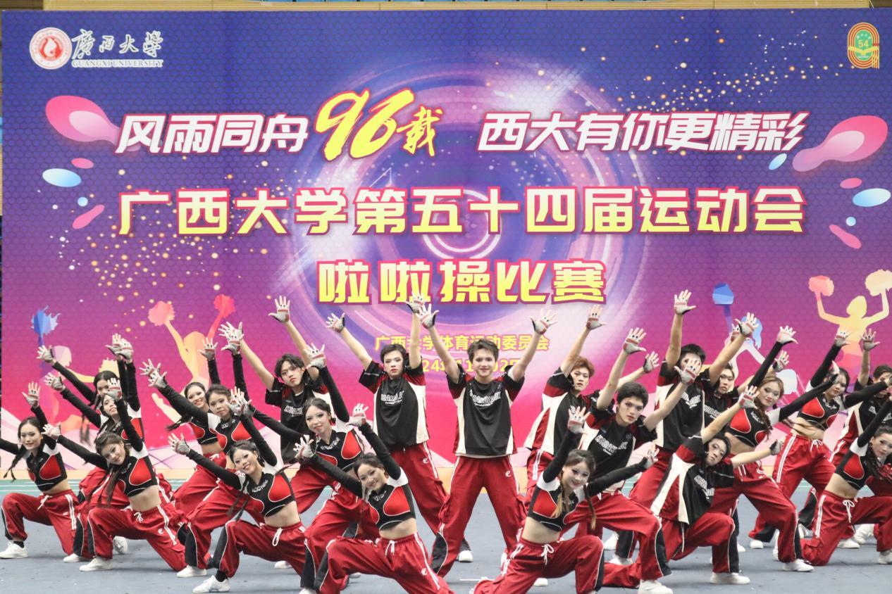第五十四届运动会啦啦操比赛在西校园综合体育馆举行。本次比赛全校共有24个学院代表队参加,其中分为大学院组16支队伍,小学院组8支队伍。h视频