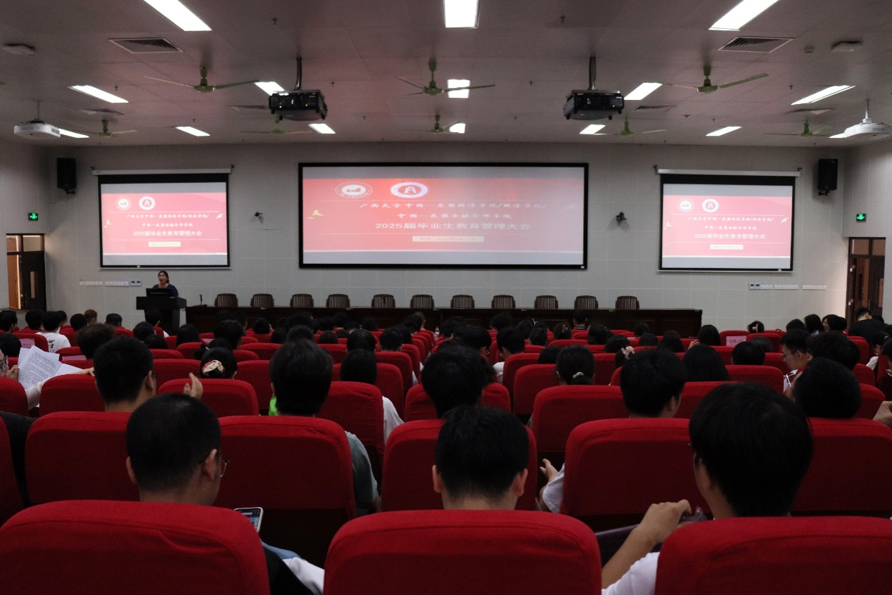 在东校园六教第一阶梯教室召开2025届毕业生大会暨毕业生党员专题教育会。院党委常务副书记姜玮、党委副书记刘梦娟等学院领导及全体毕业生参会,会议聚焦党性教育、爱校荣校、征兵动员、毕业手续办理及反诈宣传等关键环节,为毕业生上好离校“最后一课”。