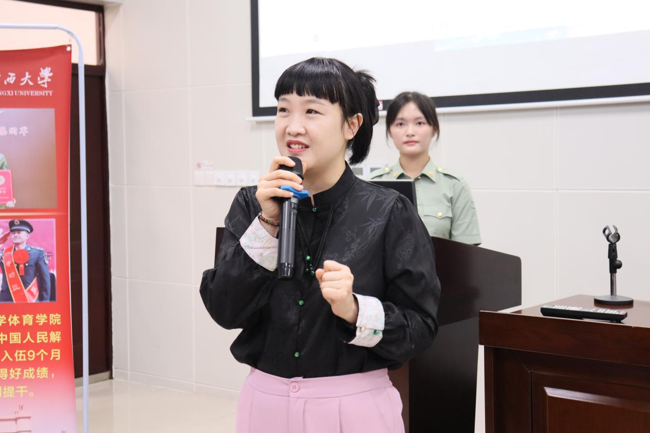 校学工部(处)、武装部磨奕君与退伍大学生莫谨瑜作征兵政策宣讲。宣讲结合军营生活、职业发展路径及优抚政策,重点解读了应届毕业生入伍的专项优势,鼓励毕业生将个人理想融入强军实践。现场互动环节中,莫谨瑜分享的军旅成长经历引发热烈反响。