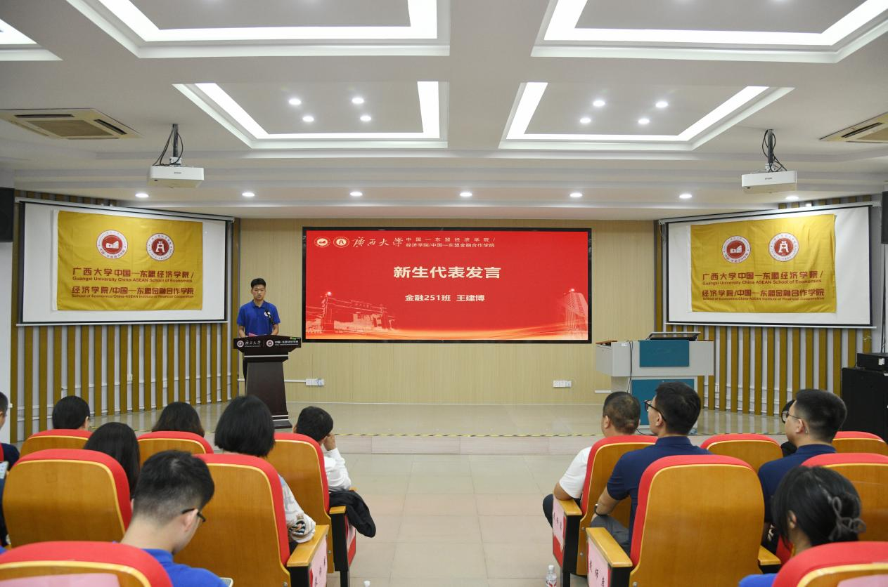 学院研究生会主席团成员、2024级金融专硕的李沅芷以“扎根、破界、坚守”为关键词,为新生们提出了三点建议:她鼓励新生深入中国—东盟合作一线,厚植家国情怀;善用国际化平台,拓展全球视野;保持热爱与信念,锤炼研究能力和职业品格。最后,她也祝愿新生们学有所成、青春无悔。