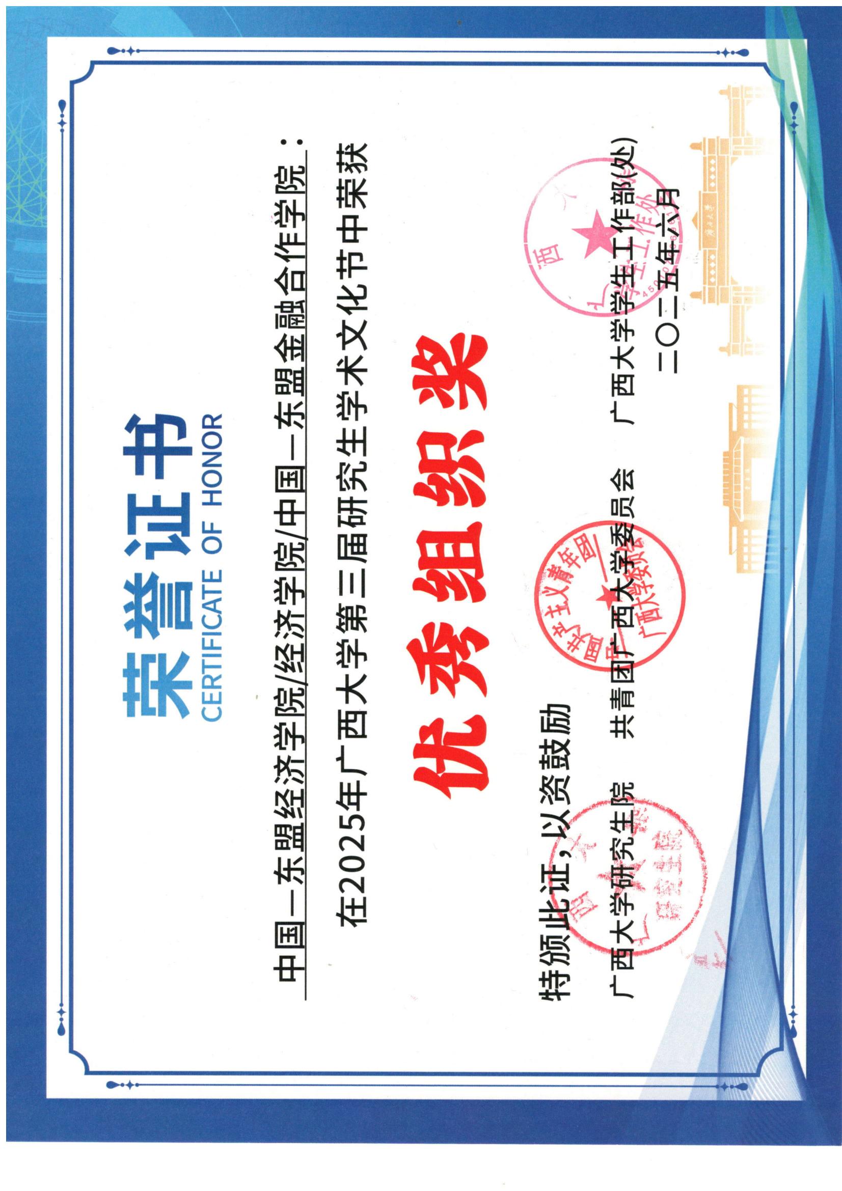 第三届研究生学术文化节优秀组织奖