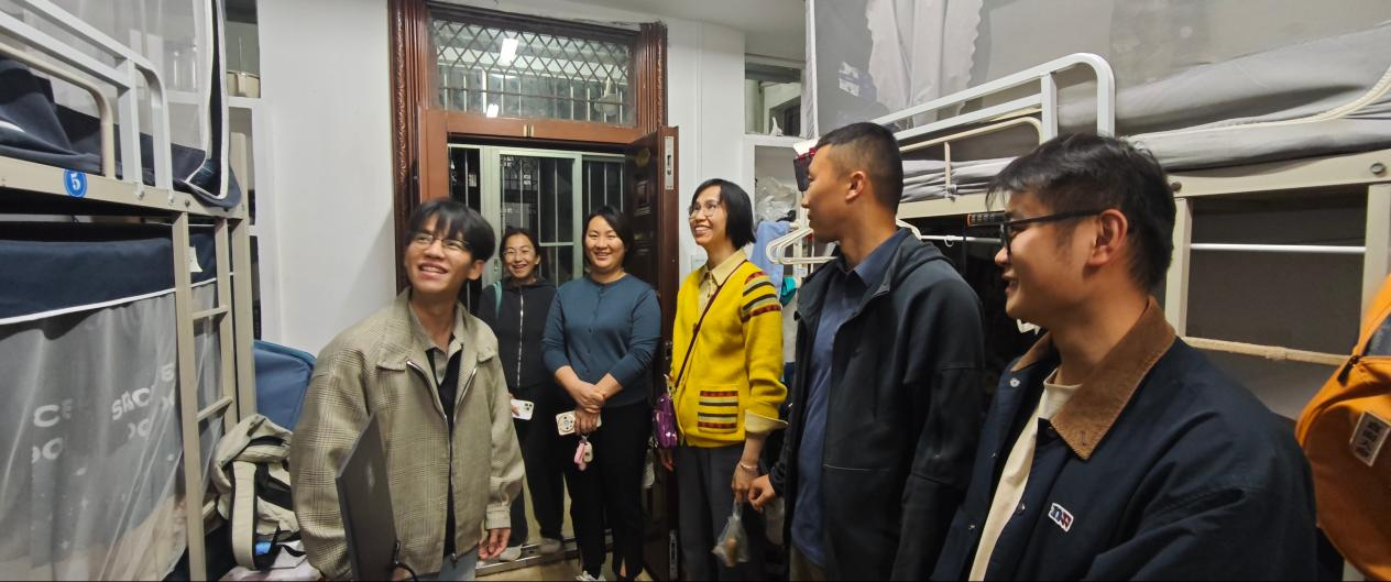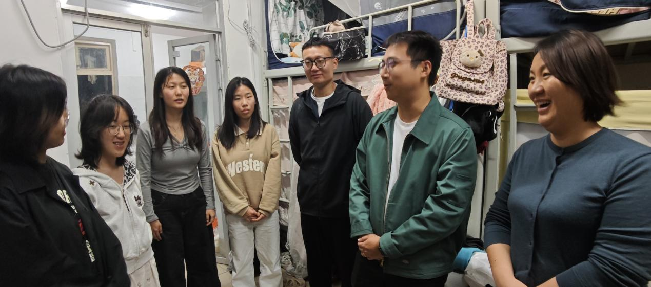 党委副书记刘梦娟、团委书记王海希及全体学工组辅导员一行深入学生宿舍开展走访慰问活动,与学生面对面交流,送去关怀与嘱托。