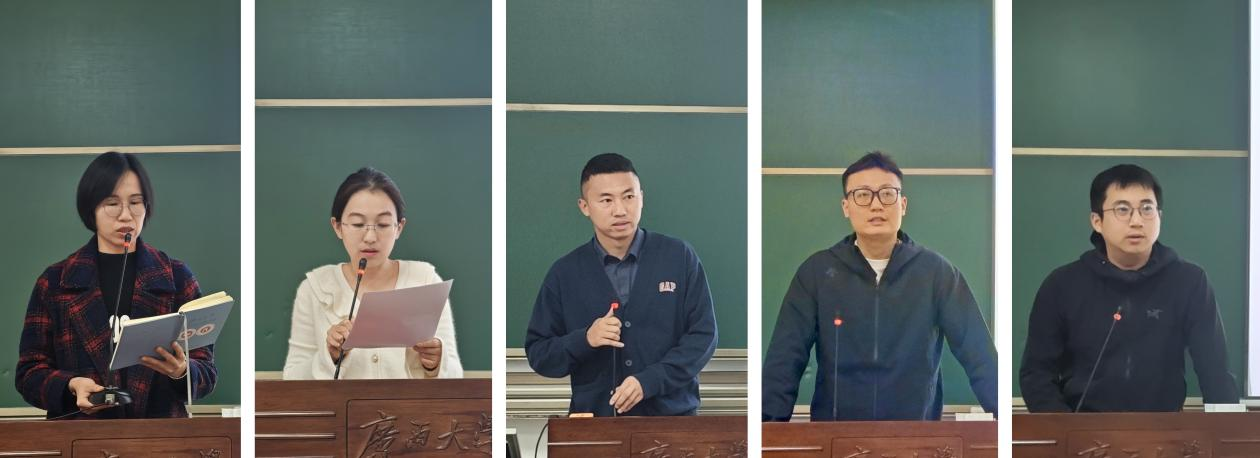 在新学期学生工作部署环节,学工组五位辅导员结合分管领域提出具体要求:曹魏聚焦思政引领、安全教育及诚信考试;郭霖刚规范党建工作、理论学习与新闻宣传;刘威强化学风建设与精准资助;于娜推进就业指导与研究生管理;王海希部署两会精神学习、基层团务及心理健康工作,为学院新学期学生工作开展明晰方向。