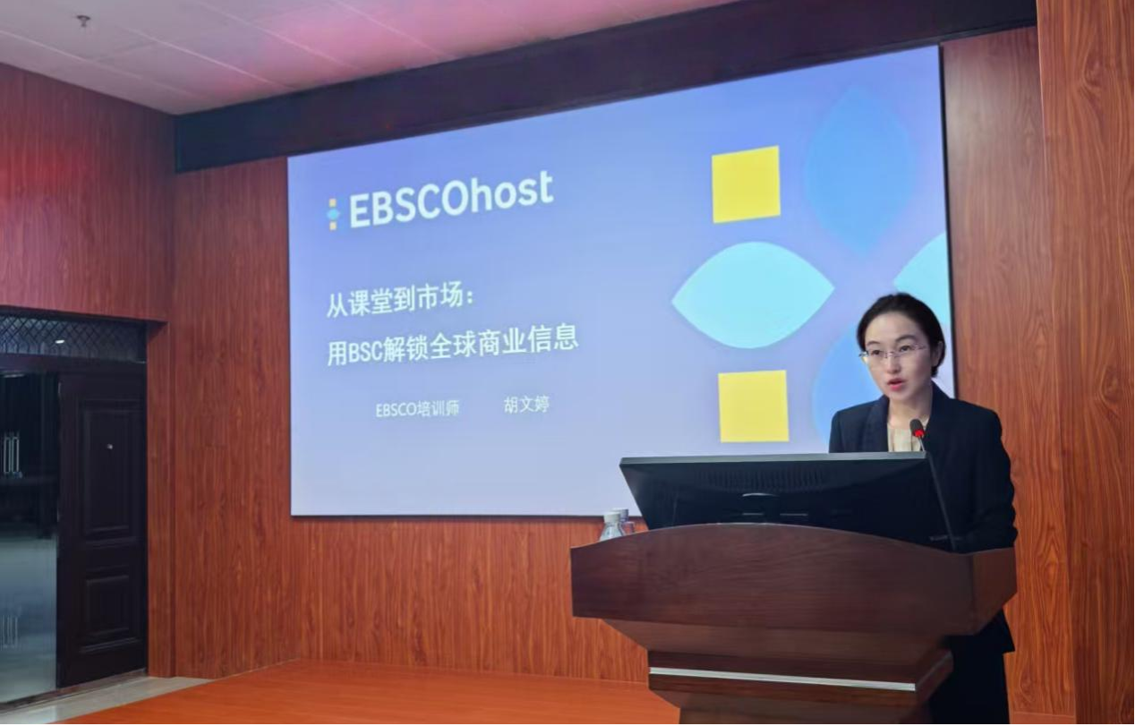 本次培训由于娜老师主持,图书馆资源建设部黄映思老师出席,特邀EBSCO培训师胡文婷主讲,聚焦全球权威商业数据库Business Source Complete(BSC)的核心功能与实用技巧,学院各年级本科生、研究生代表到场参与。