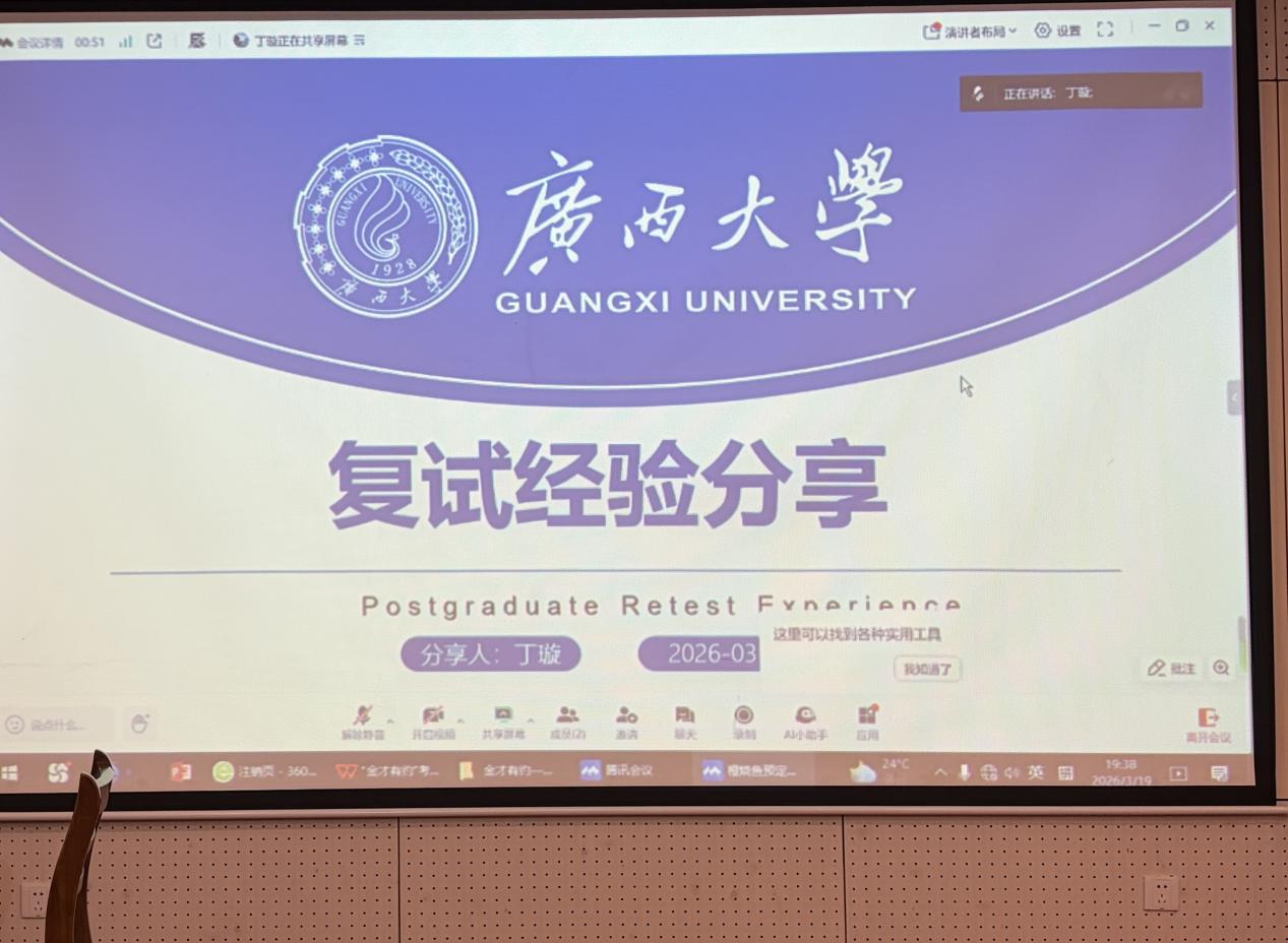 本次分享会围绕考研复试备考核心需求,设置经验分享与互动答疑两个环节。四位嘉宾结合自身经历,从名校面试、本校复试、调剂信息搜集、备考策略及心态调整等方面展开讲解,内容涵盖复试全流程,为在场学子提供了针对性的实用建议。