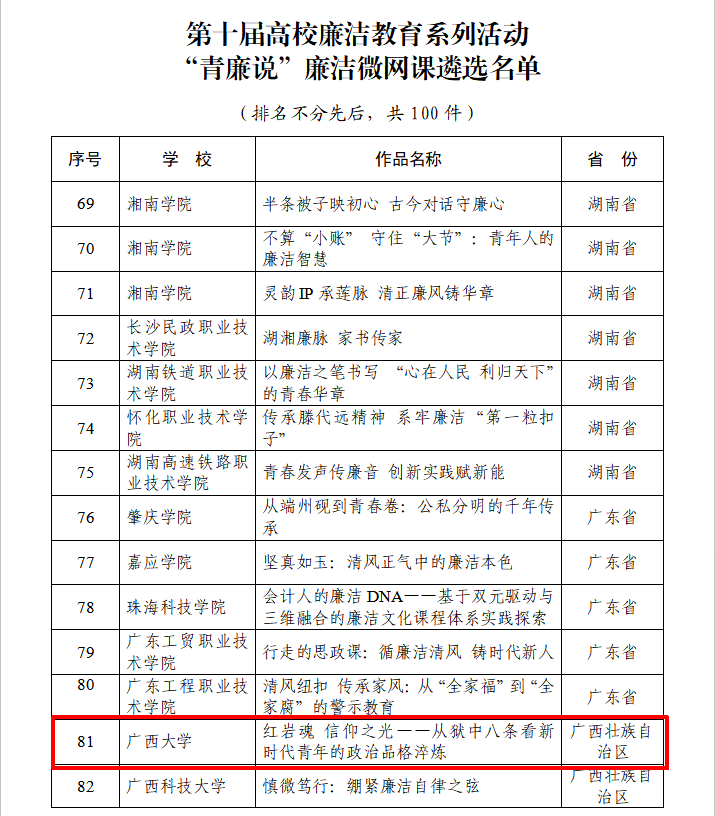 近日,教育部公布第十届高校廉洁教育系列活动遴选结果,我校5个作品入选遴选作品名单。其中,h视频