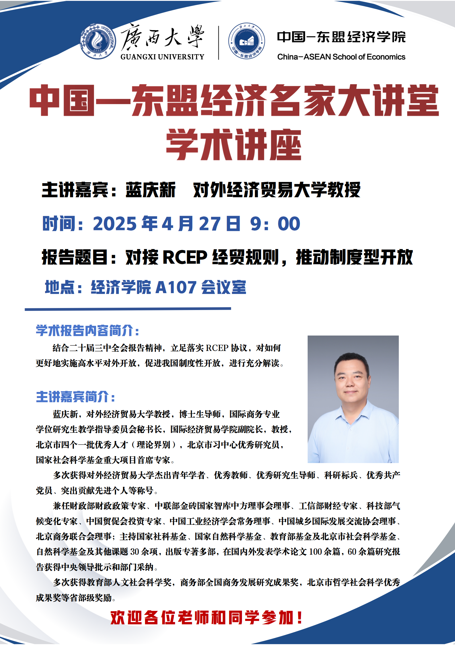中国—东盟经济名家大讲堂:对接RCEP经贸规则,推动制度型开放