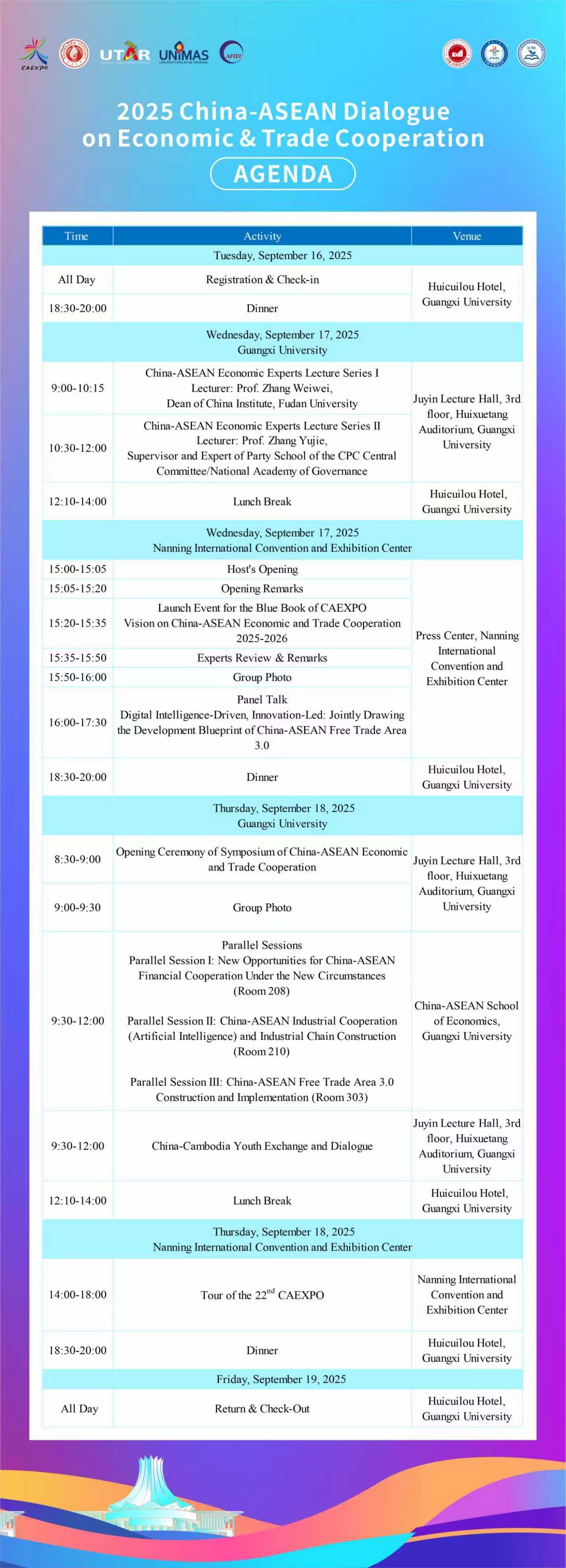 第22届中国—东盟博览会“2025年中国—东盟经贸合作对话活动”日程安排