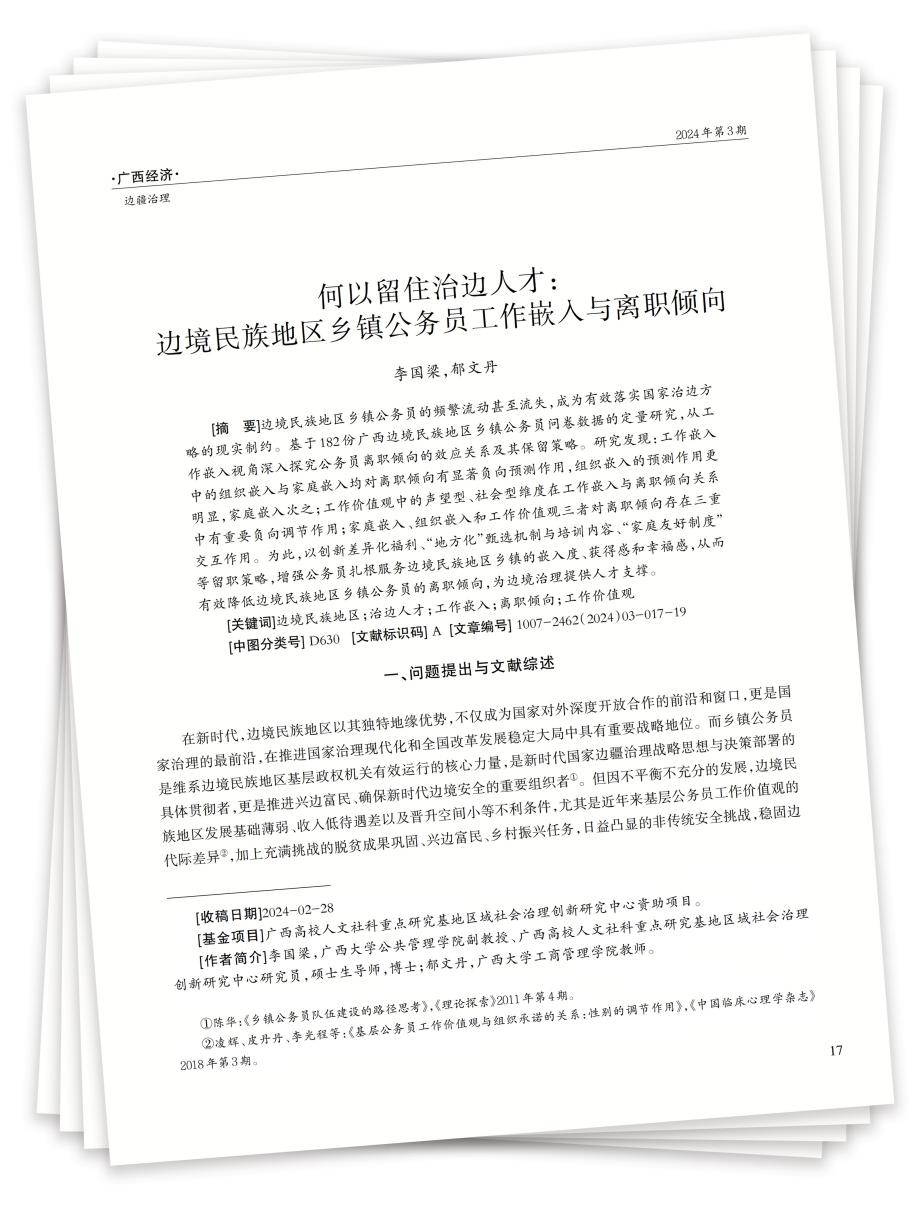 [关键词]边境民族地区;治边人才;工作嵌入;离职倾向;工作价值观