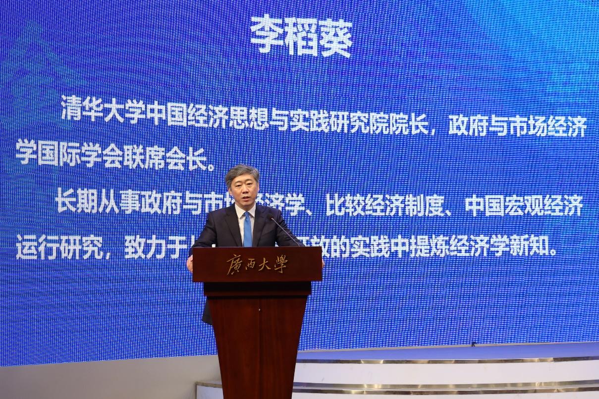 校长韩林海,清华大学副校长杨斌(线上参会),广西壮族自治区地方金融监督管理局副局长樊新鸿出席开幕式并致辞。