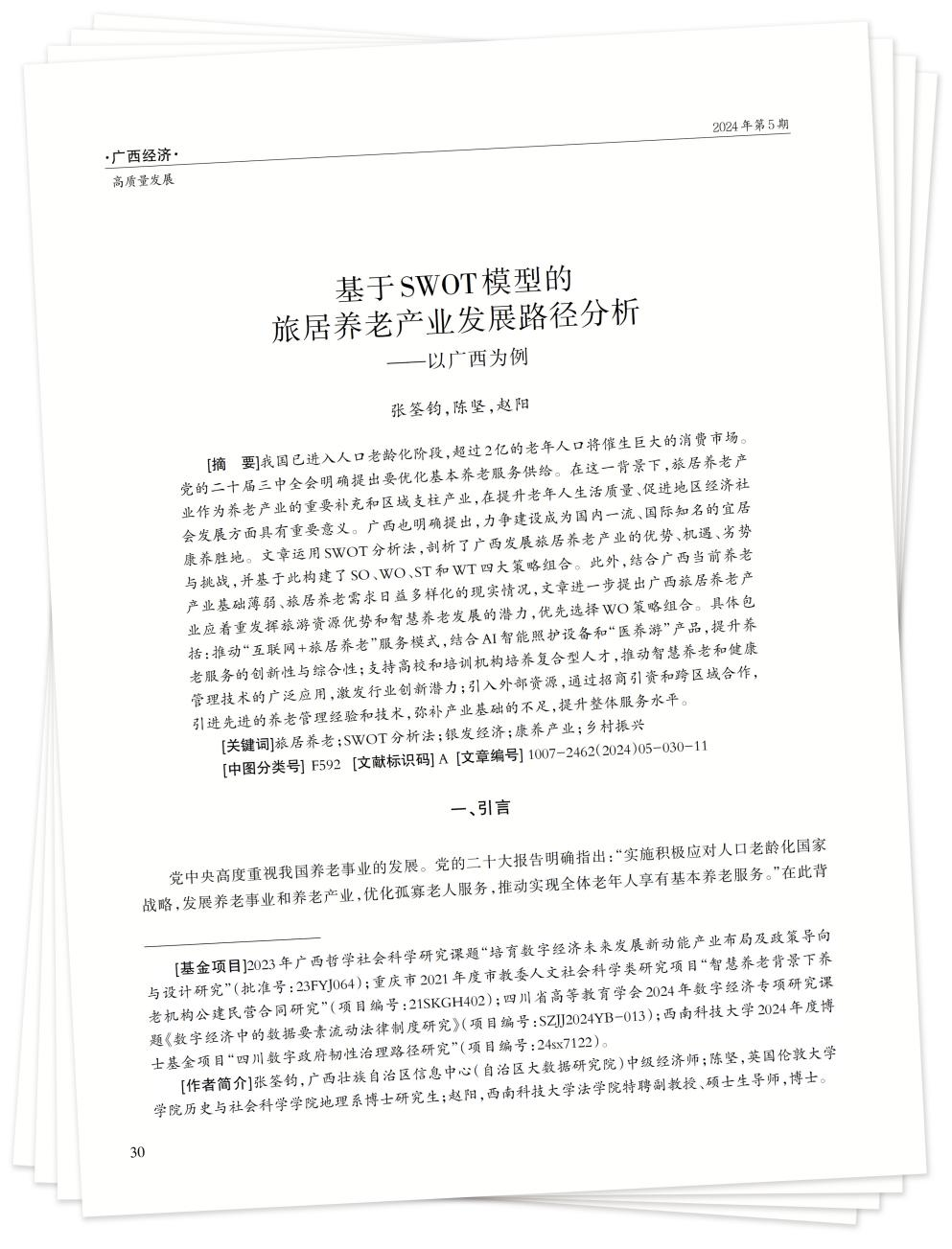 [关键词]旅居养老;SWOT分析法;银发经济;康养产业;乡村振兴